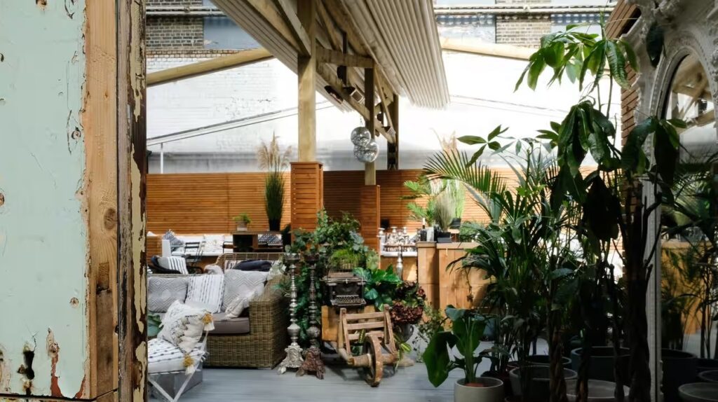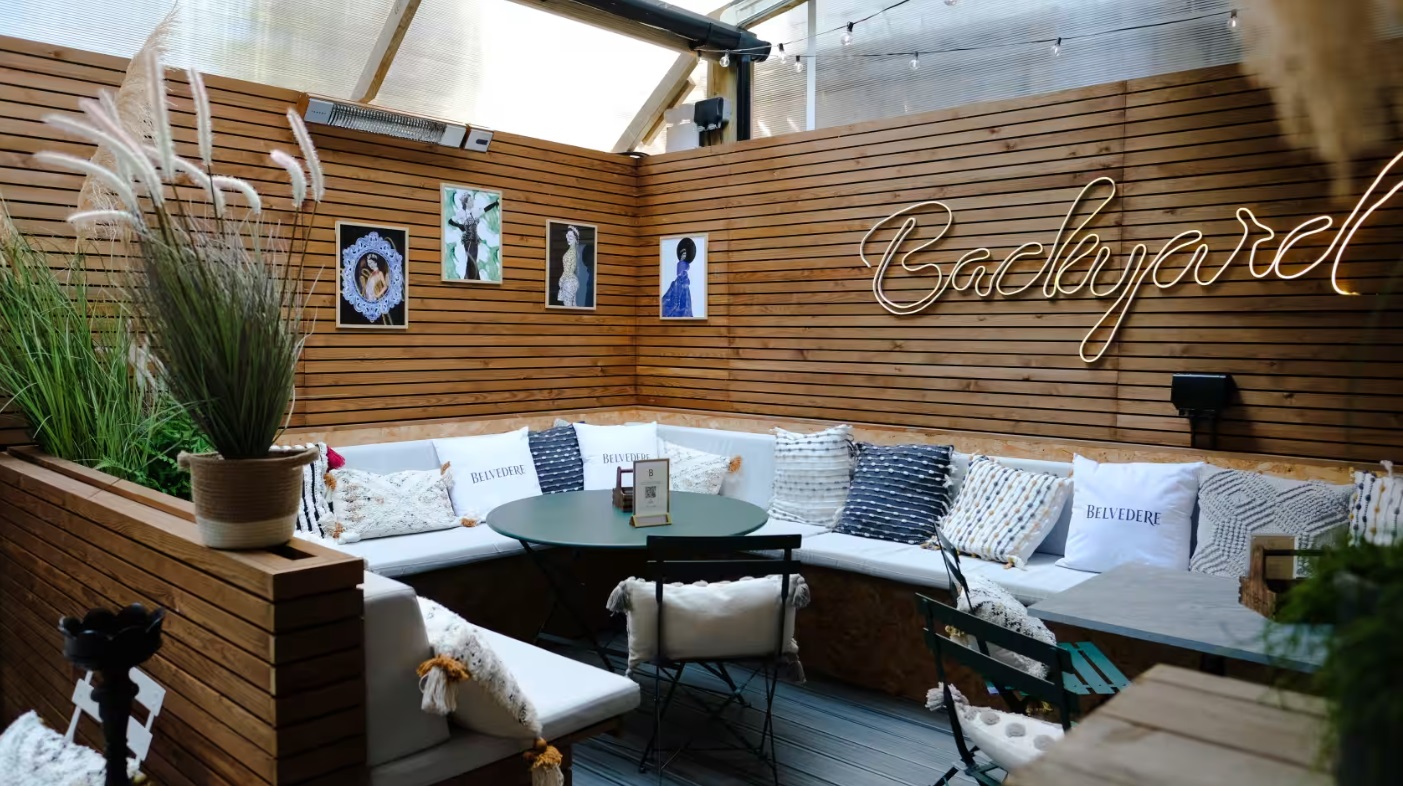Located far from the hustle and bustle of Shoreditch High Road, this space is bathed in sunlight during the day and transforms into a covered, heated wonderland at night.