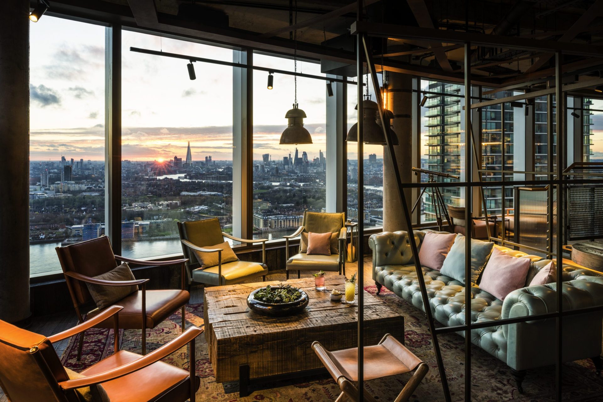 At the bar and roof terrace, you’ll find a specialized gin bar that’s perfect for intimate gatherings while enjoying breath-taking views of London.
