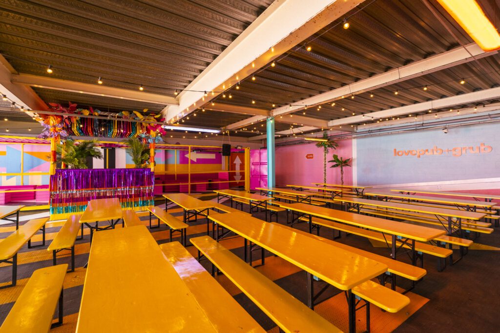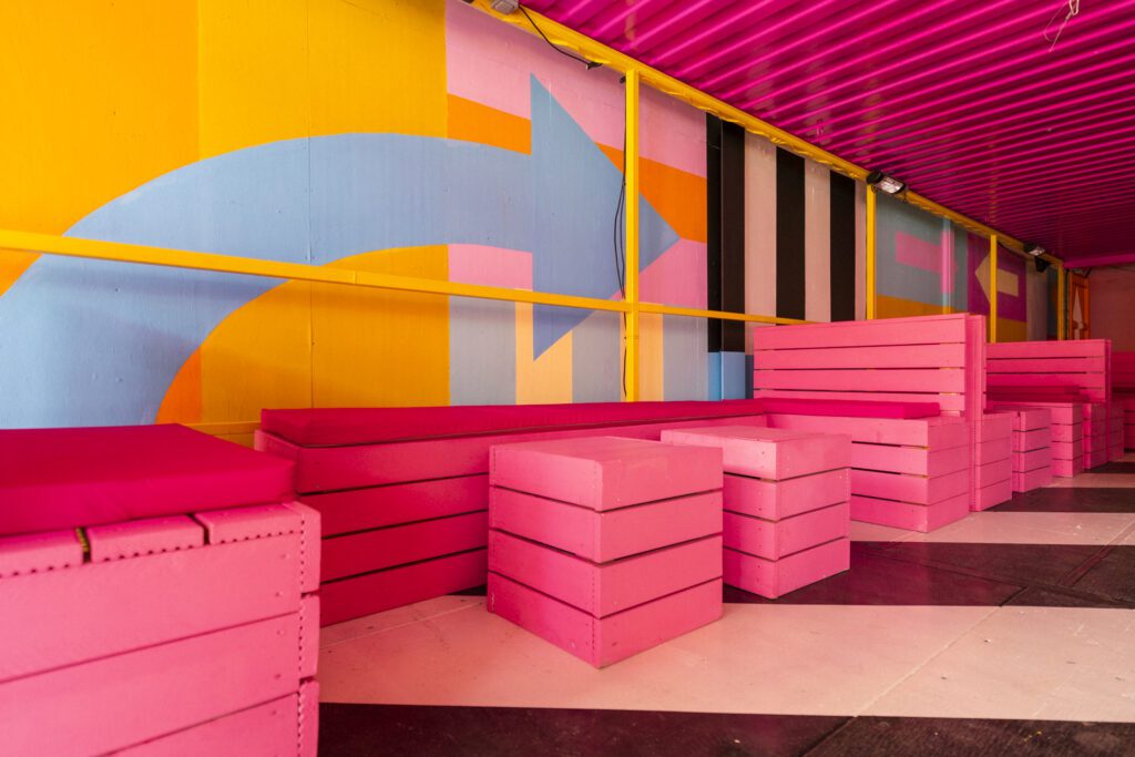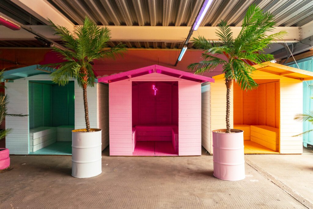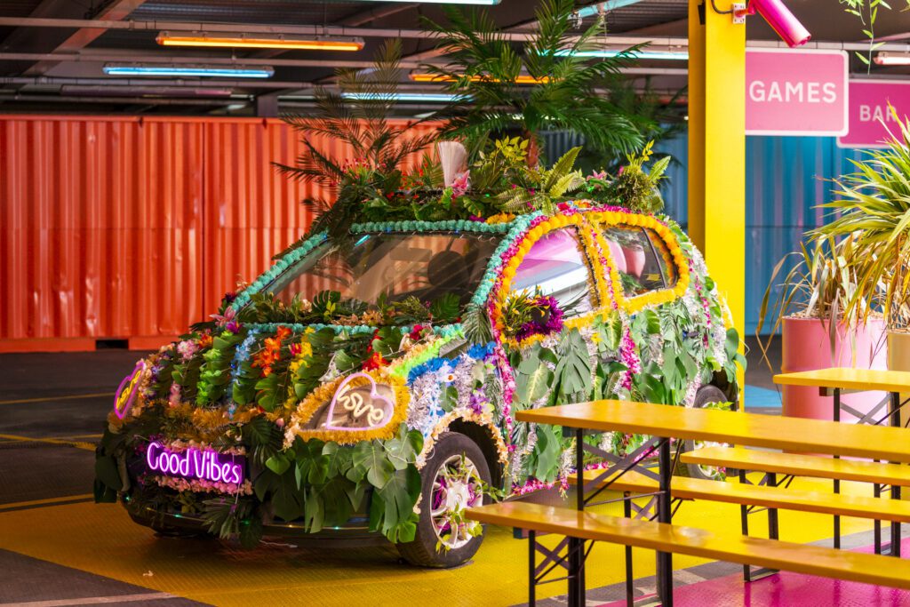 This is a fully self-contained venue with an eye catching Insta-savvy revamped car park theme, complete with colour-coded scooters and flower festooned car.