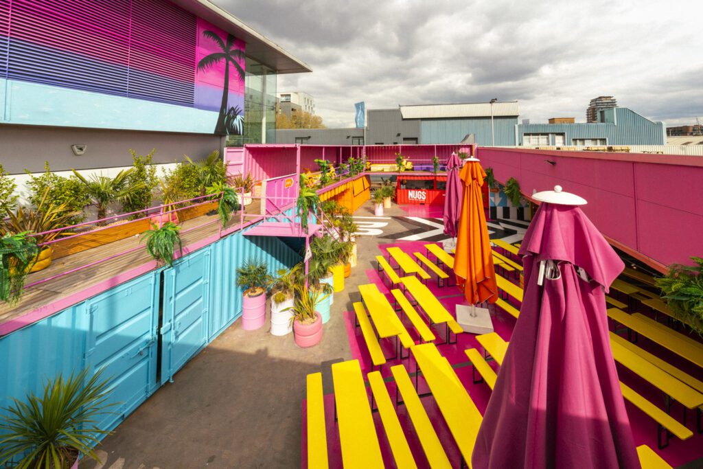 SITE 5 is the exciting new outdoor venue at Studio Spaces. A colourful, vibrant, two-tiered urban playground that creates the perfect backdrop for corporate celebrations, summer parties, team-building activity days, and productions.