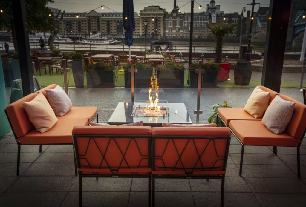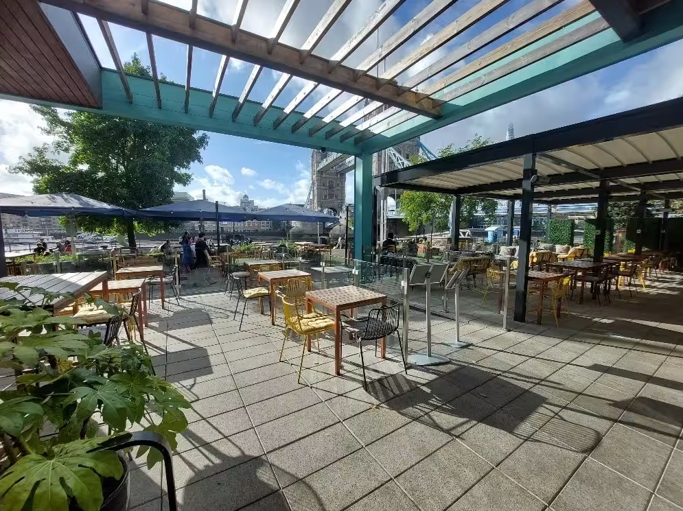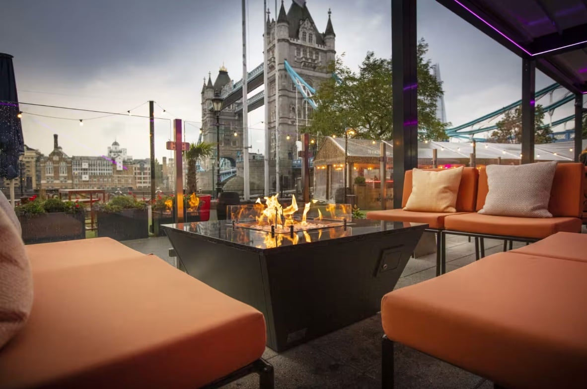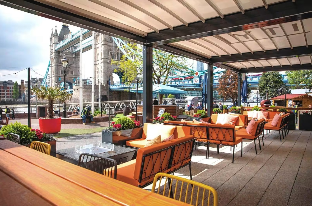 Situated along the riverfront, Vicinity is a laid-back bar and eatery offering panoramic views of the London skyline. From bustling lunch hours to serene sunsets, guests can unwind on the heated terrace while savoring cocktails and dining with Tower Bridge as the backdrop, offering the quintessential London experience.
