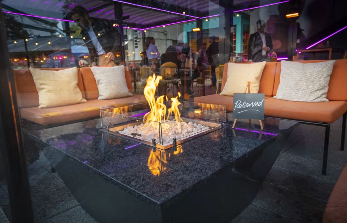 The menu at Vicinity showcases a globally-inspired selection of dishes, ranging from world classics to street food-inspired plates, including pizzas, sandwiches, salads, and platters. Guests can also enjoy a variety of cocktails, fine Champagnes, and elegant wines while taking in the sights of London, perhaps even snagging a seat next to a cozy fire pit.