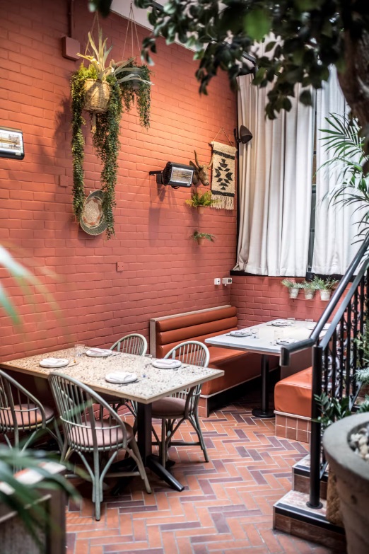 Evoking the essence of an Andalusian garden, BiBo’s secluded courtyard offers an idyllic setting for intimate lunches and dinners, accommodating up to 26 seated guests or 40 standing. This covered retreat, adorned with lush foliage, artisan ceramics, and olive trees, immerses guests in the ambiance of the Mediterranean, promising a memorable dining experience.
