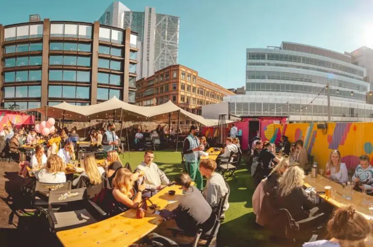The rooftop terrace has become a celebrated and essential feature of the Shoreditch skyline, eagerly anticipated by Londoners for its semi-annual transformations. Whether it’s cosying up in the winter or basking in urban warmth during summer, guests are drawn to lounge in this iconic space.