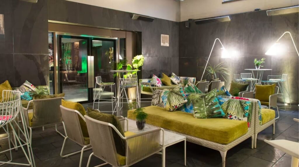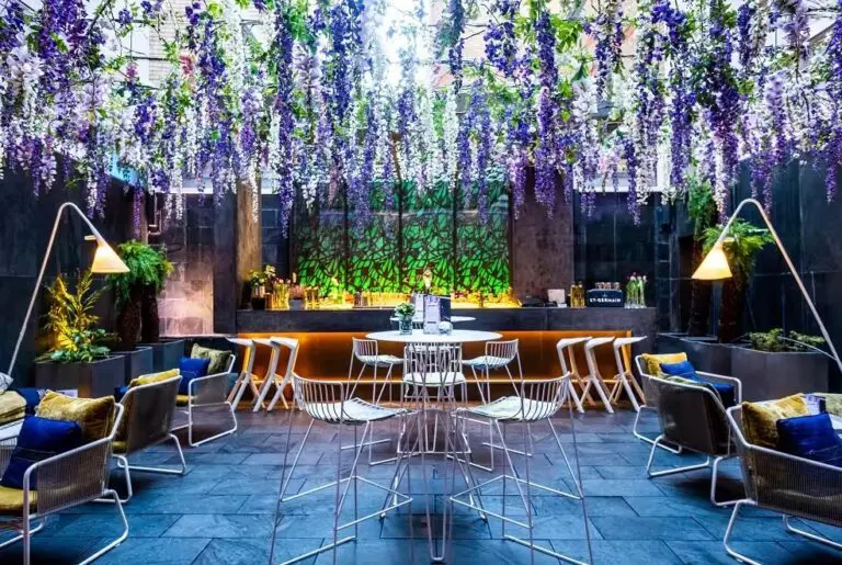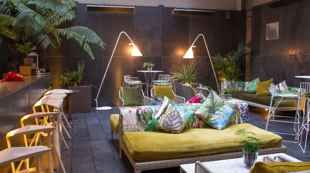 Nestled on the first floor of the hotel, The Secret Garden spans 72 square metres (775 square feet), providing a tropical oasis in the heart of The City. Guests can revel in the allure of this hidden bar, surrounded by lush foliage, and enjoy the intimate atmosphere ideal for gatherings of around 80 guests. The retractable roof and heaters maintain the tropical climate, allowing for year-round enjoyment.