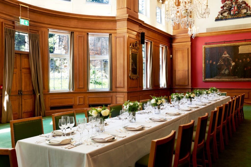 The Great Hall at Barber-Surgeons Hall exudes awe-inspiring grandeur, featuring Japanese Oak panelling and a direct link to the Terrace. Enhanced by the radiance of Waterford crystal chandeliers and bathed in natural light, this majestic room is further enriched by a remarkable Holbein painting depicting Henry VIII’s amalgamation of the Barbers’ and Surgeons’ Companies in 1541/2.