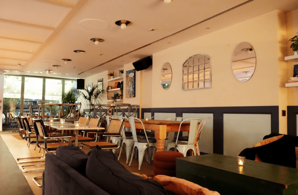 Step into the beautifully designed living room, characterized by vibrant and whimsical décor reminiscent of a beloved friend’s cosy living space. Downstairs, the area exudes character with shabby-chic mixed furniture, ample natural light, and an abundance of charming plants, making it a versatile venue suitable for morning meetups or vibrant late-night events.