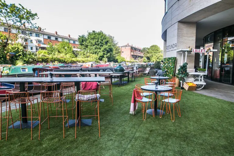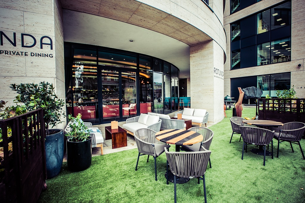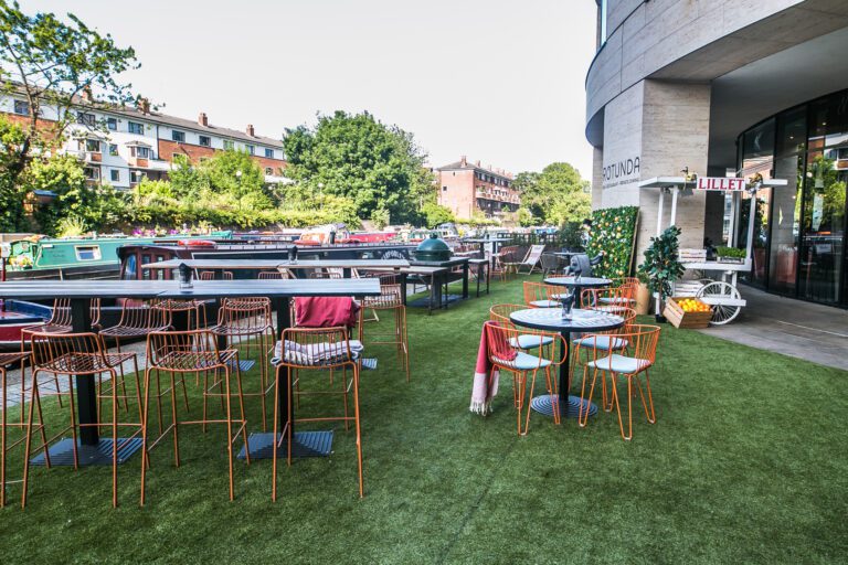Benefiting from an enviable location, Rotunda features floor-to-ceiling windows that provide breathtaking views of the Regent’s Canal. Its terrace wraps around the bar, restaurant, and private dining room, adding to the allure of the space.