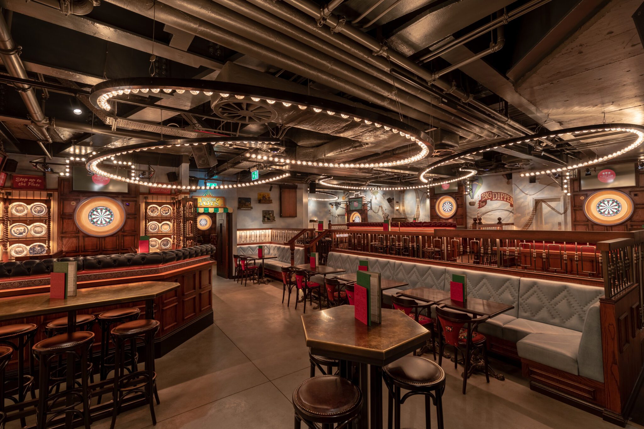 At Flight Club Victoria, prepare for an immersive fairground-inspired experience like never before. Ascend the helter-skelter staircase to discover 18 uniquely designed oche playing areas and a stunning bar, offering ample space. Uncover hidden surprises throughout the venue, bask in the vibrant bar atmosphere, or unwind in the enchanting outdoor Magic Gardens, a space designed to fulfil your event dreams.