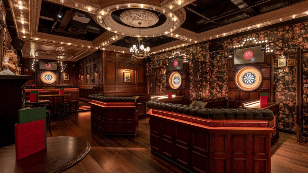 Featuring 18 exquisitely designed oche playing areas and a spectacular bar, Flight Club Victoria offers ample space for up to 650 people. Whether you’re drawn to the vibrant bar atmosphere, eager to discover hidden surprises throughout the venue (keep a keen eye out!), or seeking relaxation in the charming Magic Gardens, there’s something to delight every guest.