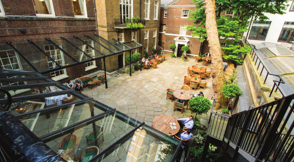 This hidden gem nestled in the heart of St James’s provides an idyllic backdrop for summer gatherings. Accessible from the Inner Hall via a bridge, the Courtyard is embraced by 18th-century structures and a coach house, offering a tranquil escape under the shade of two majestic London Plane trees. Adorned with bay and olive trees, elegant sculptures, and vibrant planters, this lush and serene area is highly sought after.