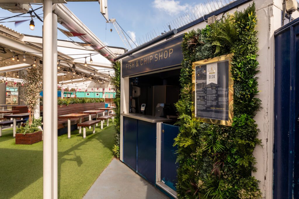 The Aft Deck offers a beautiful outdoor space, partly covered and heated, making it ideal for colder days as well. With its own private bar and fish and chip stall, it’s the perfect setting for private events during the summer and ideal for summer parties.