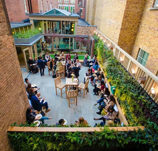 Invite your guests to indulge in freshly prepared dishes and innovative cocktails while basking in the urban sunlight. The captivating Orangery and Courtyard Garden offer a serene escape from the city’s hustle and bustle, creating an idyllic setting for relaxation and connection with colleagues or clients in one of London’s most coveted locations. This haven in the city centre boasts a lush ‘living wall,’ ambient lighting, and custom seating—an ideal spot for alfresco gatherings.
