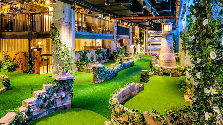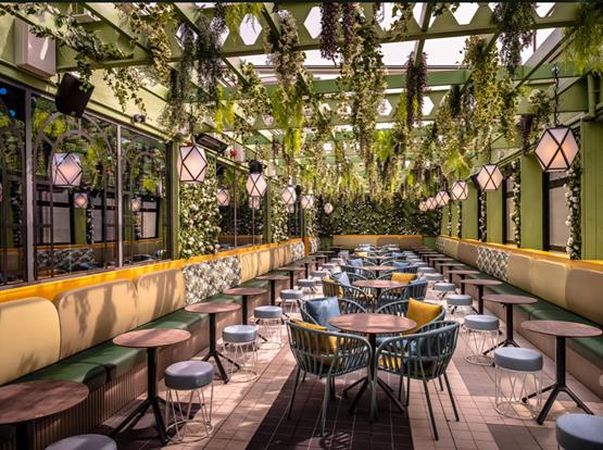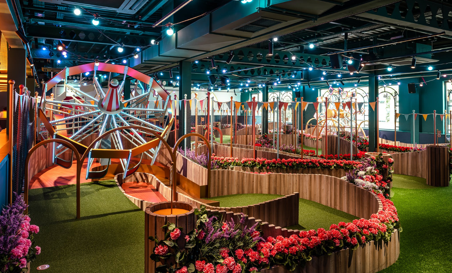 Indulge in cocktails while basking in the sunshine on the 3,000 sq ft terrace adorned with lush greenery and a retractable roof, creating the ultimate spot for soaking up rays. Following a round of crazy golf on the Meteorite Course, unwind with a cocktail in hand. And for an alfresco dining experience, the collaboration with Patty&Bun offers a delectable array of burgers, alongside their new chicken concept, Jefferies, presenting a menu replete with salads, sandwiches, and wings.