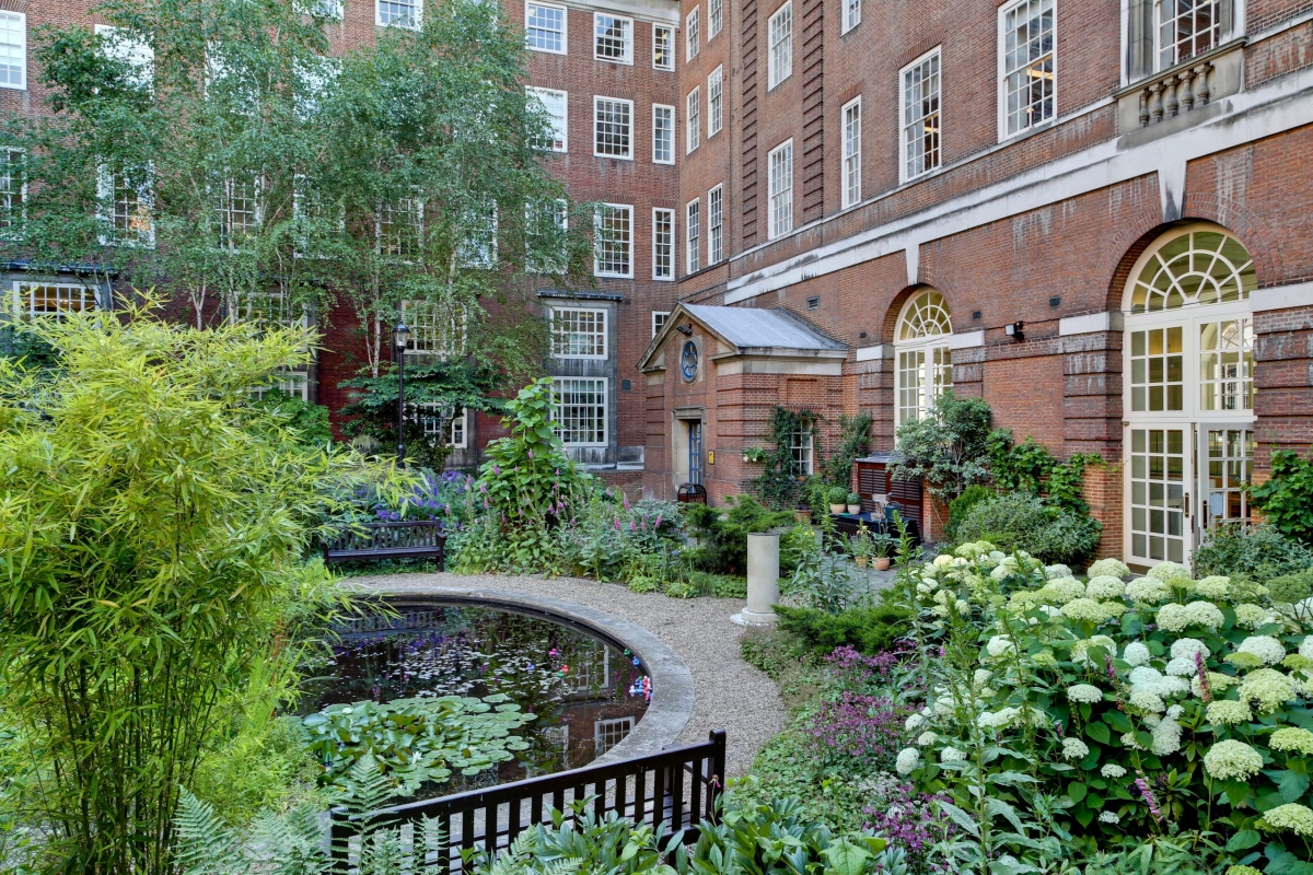 Abundant with plants, flowers, shrubs, and trees chosen for their medicinal significance, the botanical Garden at BMA House offers not only a picturesque backdrop for drinks parties and receptions but also intriguing conversation starters for its guests. The Garden’s terrace and patio area encircle its central pond, forming two adjoining spaces that create a serene setting for conference or event attendees to relax, enjoy refreshments, and unwind. Much like various facets of our historic venue, the Garden holds its own captivating tale. The current Garden site was once occupied by the building where Charles Dickens resided, crafting some of his most renowned literary works.