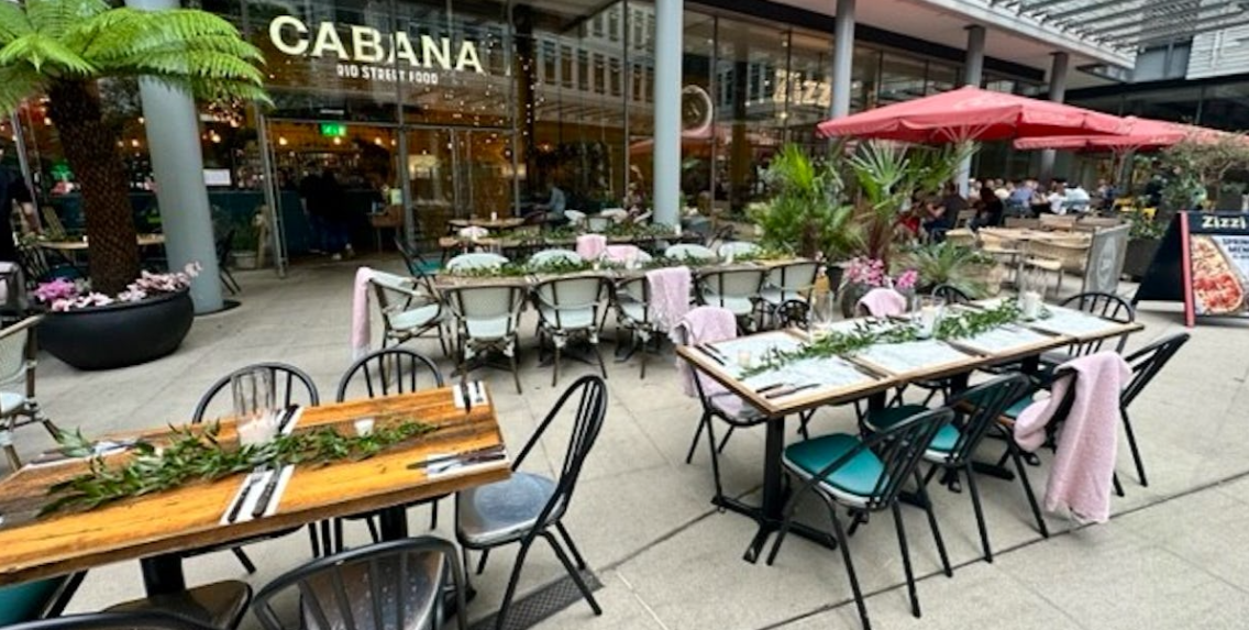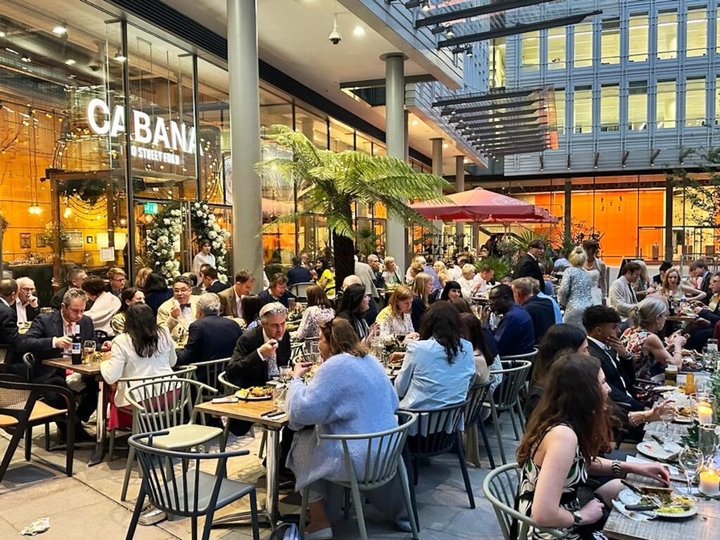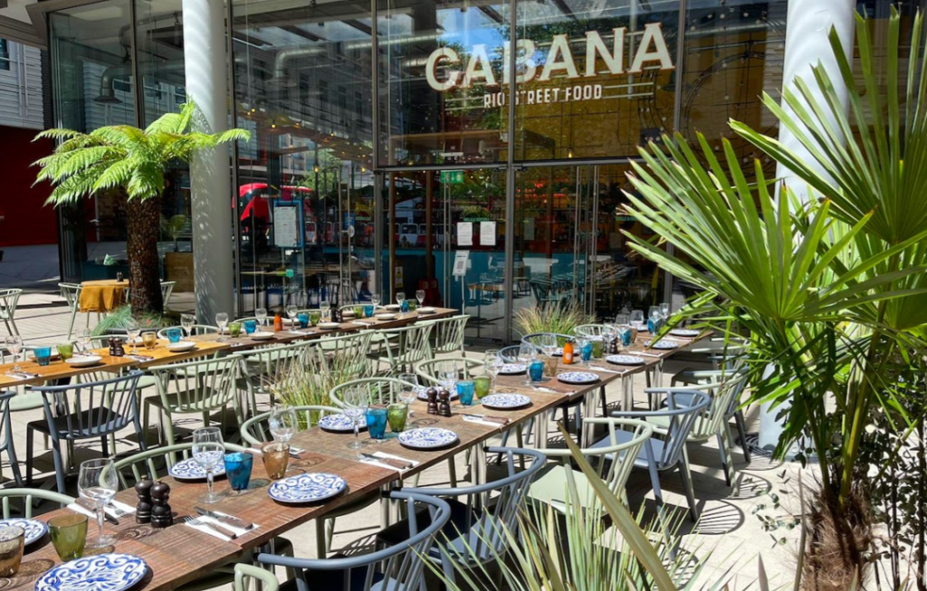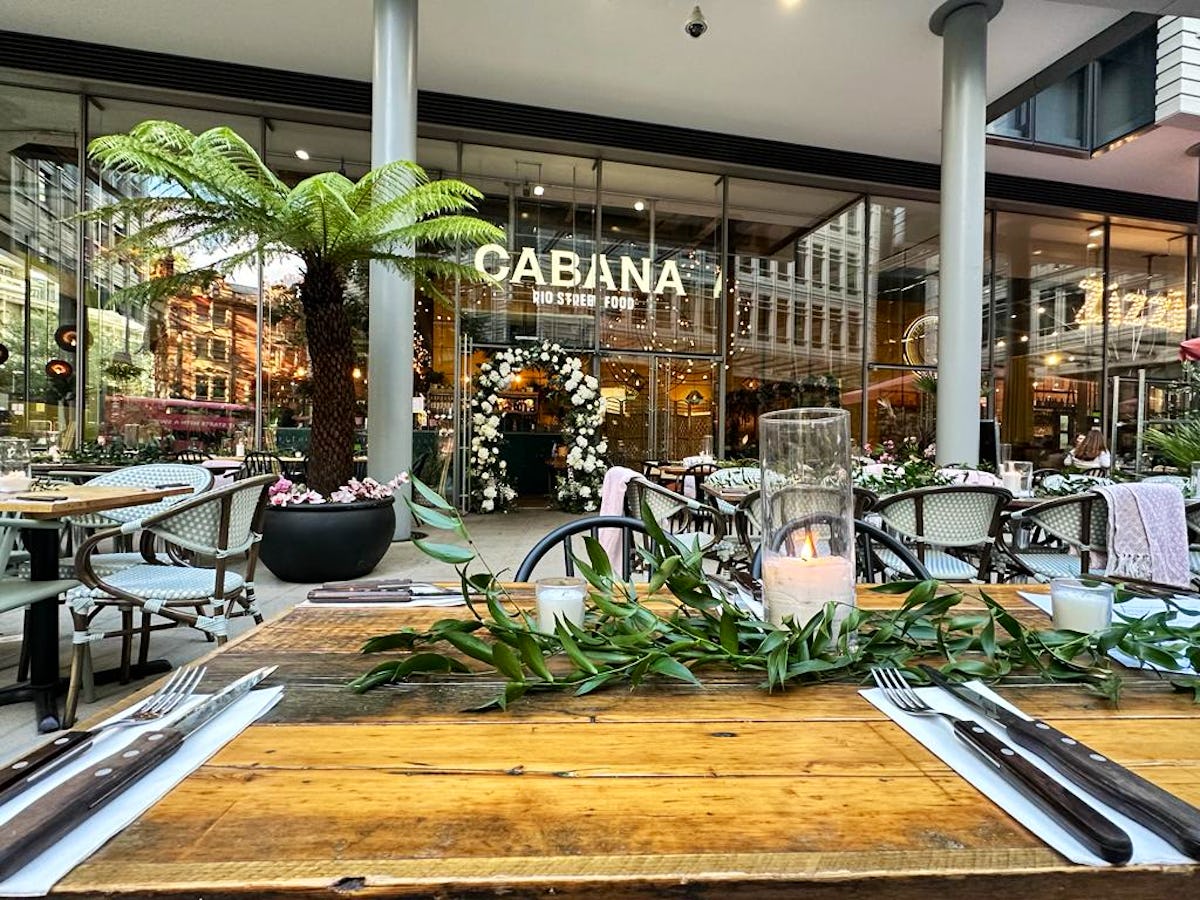 Divided into three distinct sections—The Restaurant, The Caipirinha Bar, and The Terrace—Cabana Covent Garden is a versatile venue capable of accommodating up to 200 guests for a reception-style gathering and up to 120 guests for a seated meal.