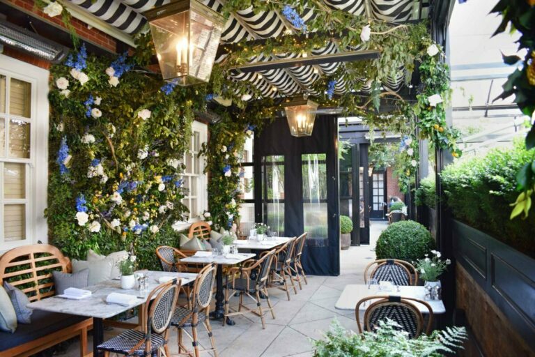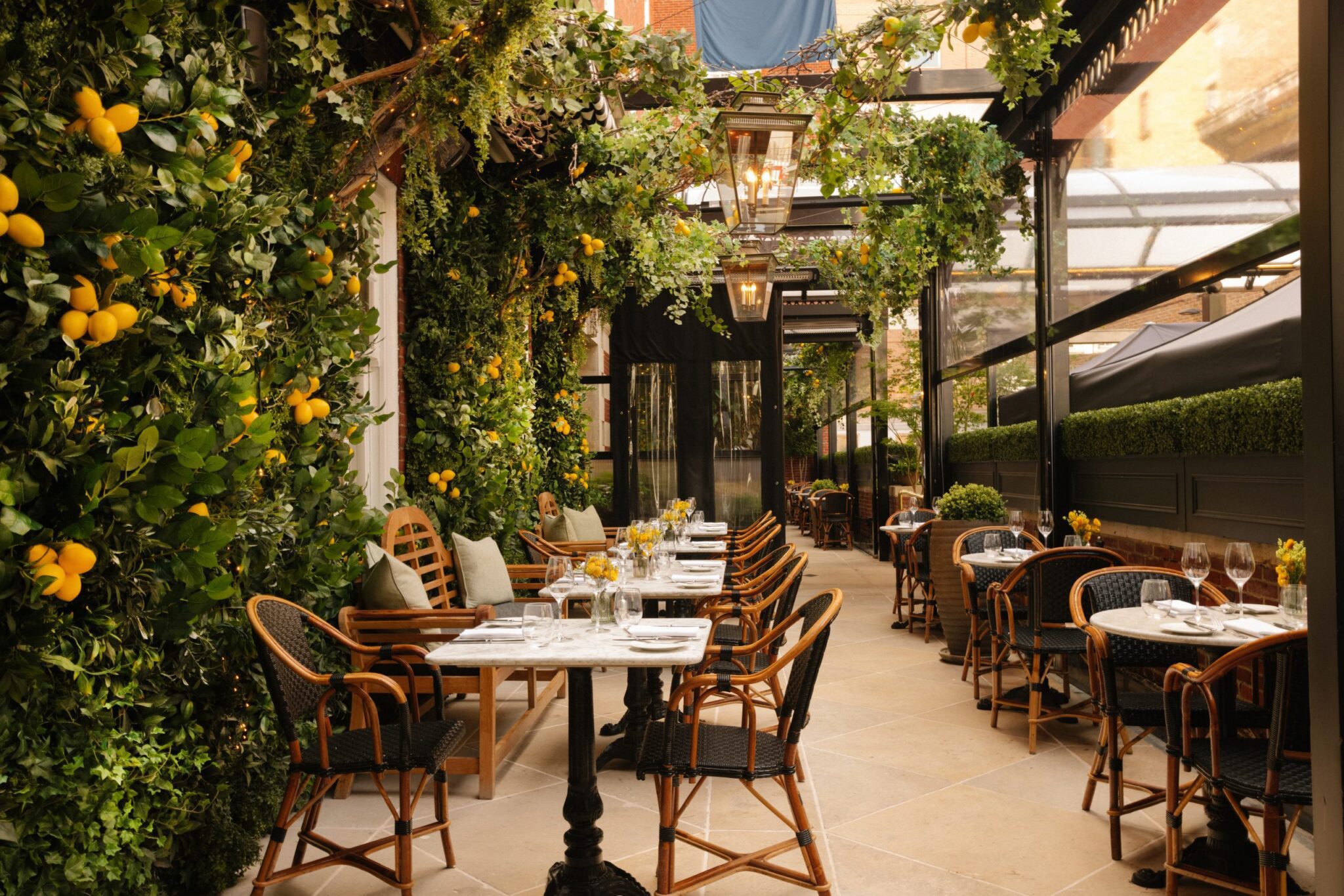 Nestled in the heart of the vibrant 18th-century Bloomsbury, London’s literary hub, this splendid indoor-outdoor space is conveniently located a brief two-minute stroll from Tottenham Court Road station amidst the lively streets of Oxford Street and Soho. In the winter, it provides a fully heated retreat, reminiscent of a secluded secret garden, while in the spring and summer months, it transforms into a luminous, graceful alfresco setting. Featuring a retractable roof and a lower terrace shielded by buxus hedging for privacy, Dalloway Terrace and Bar is a hidden gem of London.