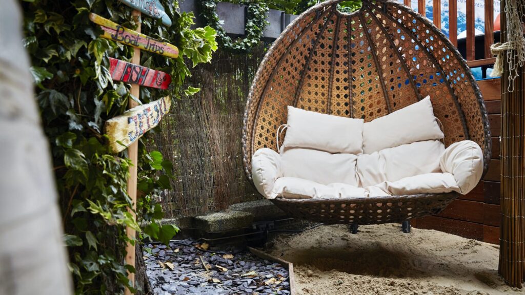 The Beach Bar is an immersive experience, meticulously themed to perfection with authentic sand, a charming thatched roof, palm trees, and even a full-size Jet Ski, setting the stage for an atmosphere of tropical delight.