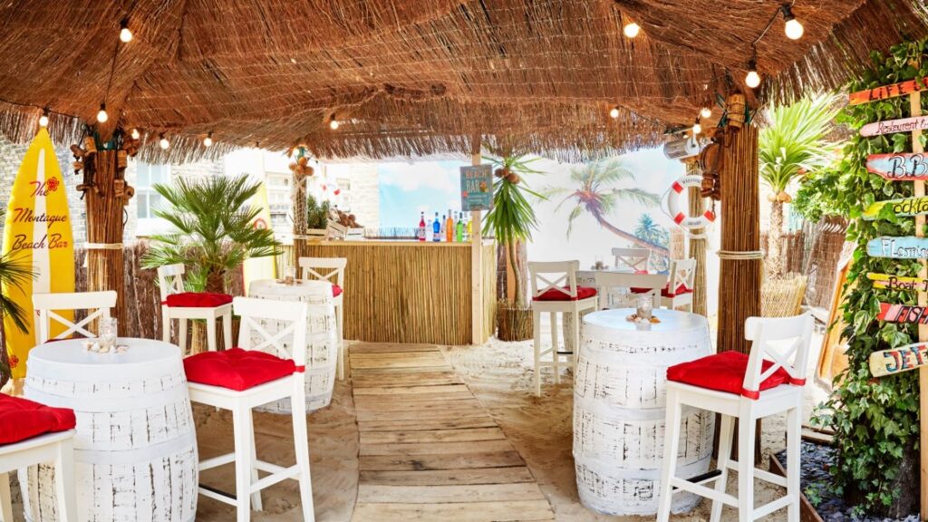 The Montague on the Gardens invites you to immerse yourself in the vibrant and lively ambiance of their unique Beach Bar—an annual spectacle that promises unforgettable fun, sand, and summer revelry. This standout event is set to be the talk of the town, offering an experience that transports you to a Central London version of the Bahamas.